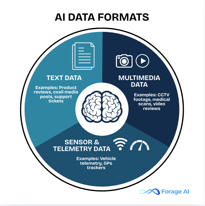 Before discussing how organizations collect different types of data, it’s important to understand the formats AI systems actually consume. While data is often categorized as structured or unstructured, AI pipelines are ultimately designed around data formats and how information is represented, processed, and fed into models.