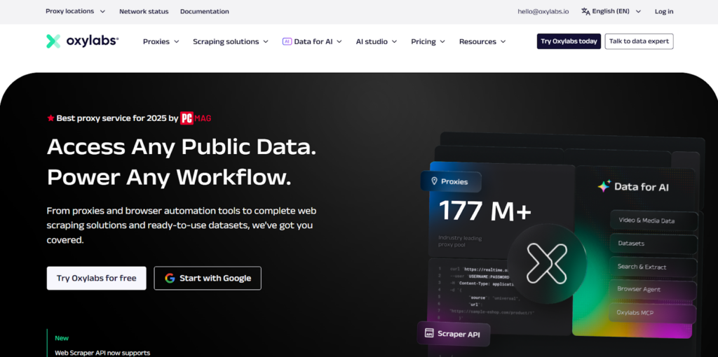 - Enterprise-scale platform: Oxylabs is positioned for large-scale public data collection and enterprise workflows.